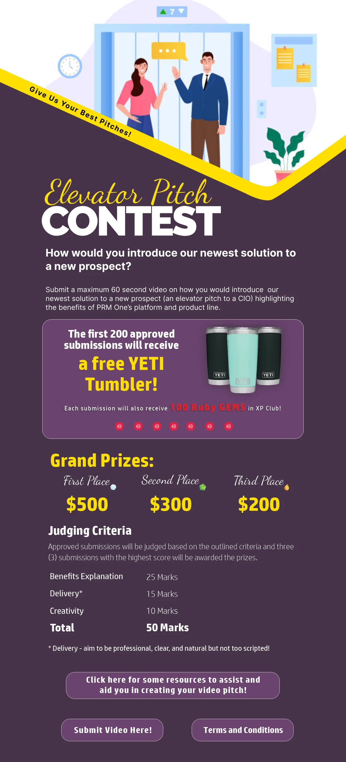 The 'Elevator Pitch Promo' motivates sales representatives to unleash their creativity by crafting an elevator pitch for a designated product. The top three standout submissions will be rewarded with grand prizes, celebrating innovation and persuasive skill