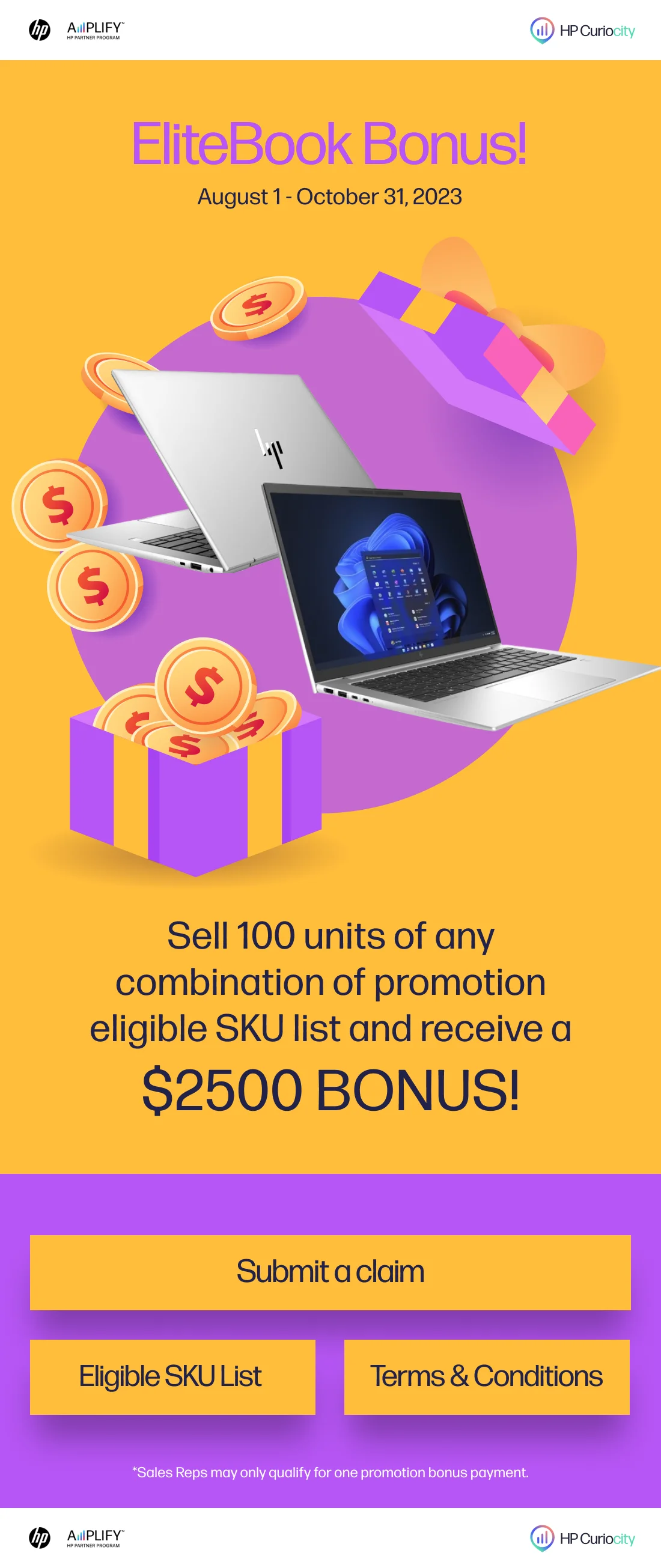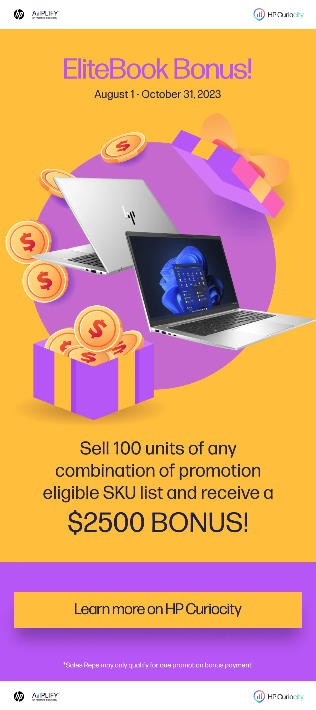 •Promotion Overview/Reward structure: For every 100 units sold reps receive up to 1 BONUS payment of 2500 HP Curiocity Points