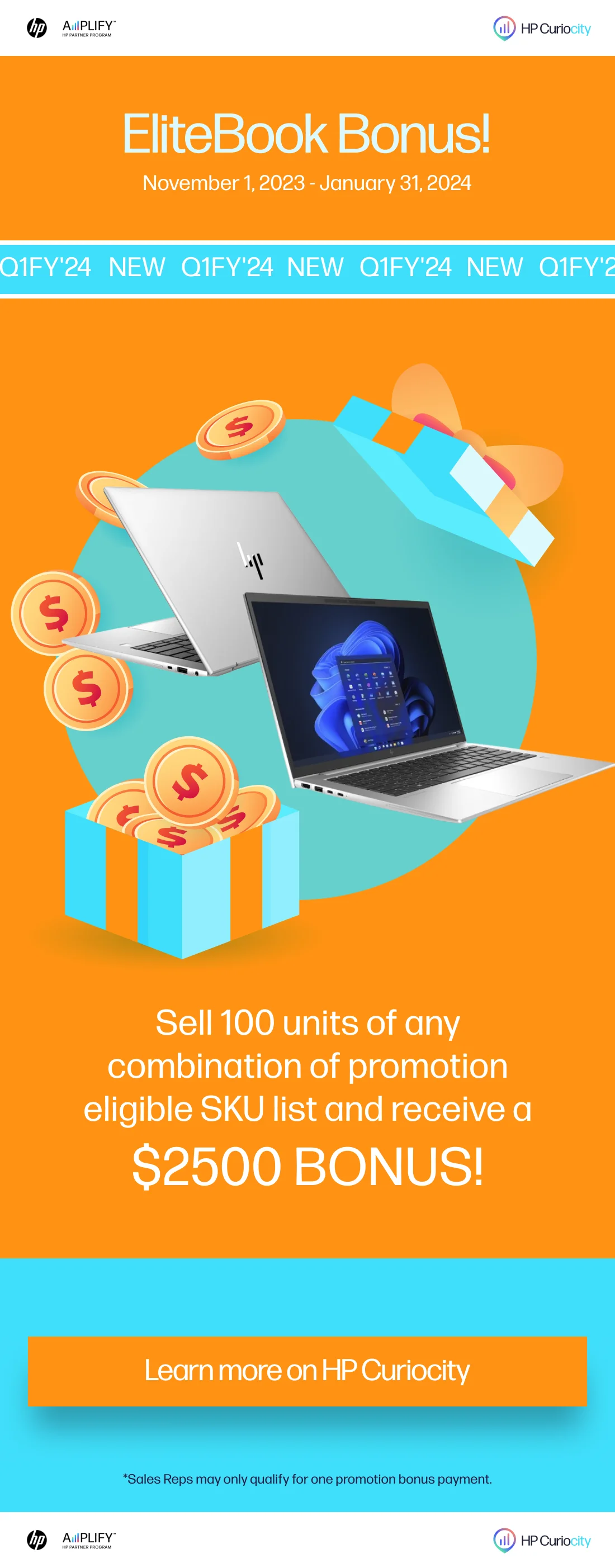 When reps sell 100 units of any combination of promotion eligible SKU list, they receive a $2500 BONUS!