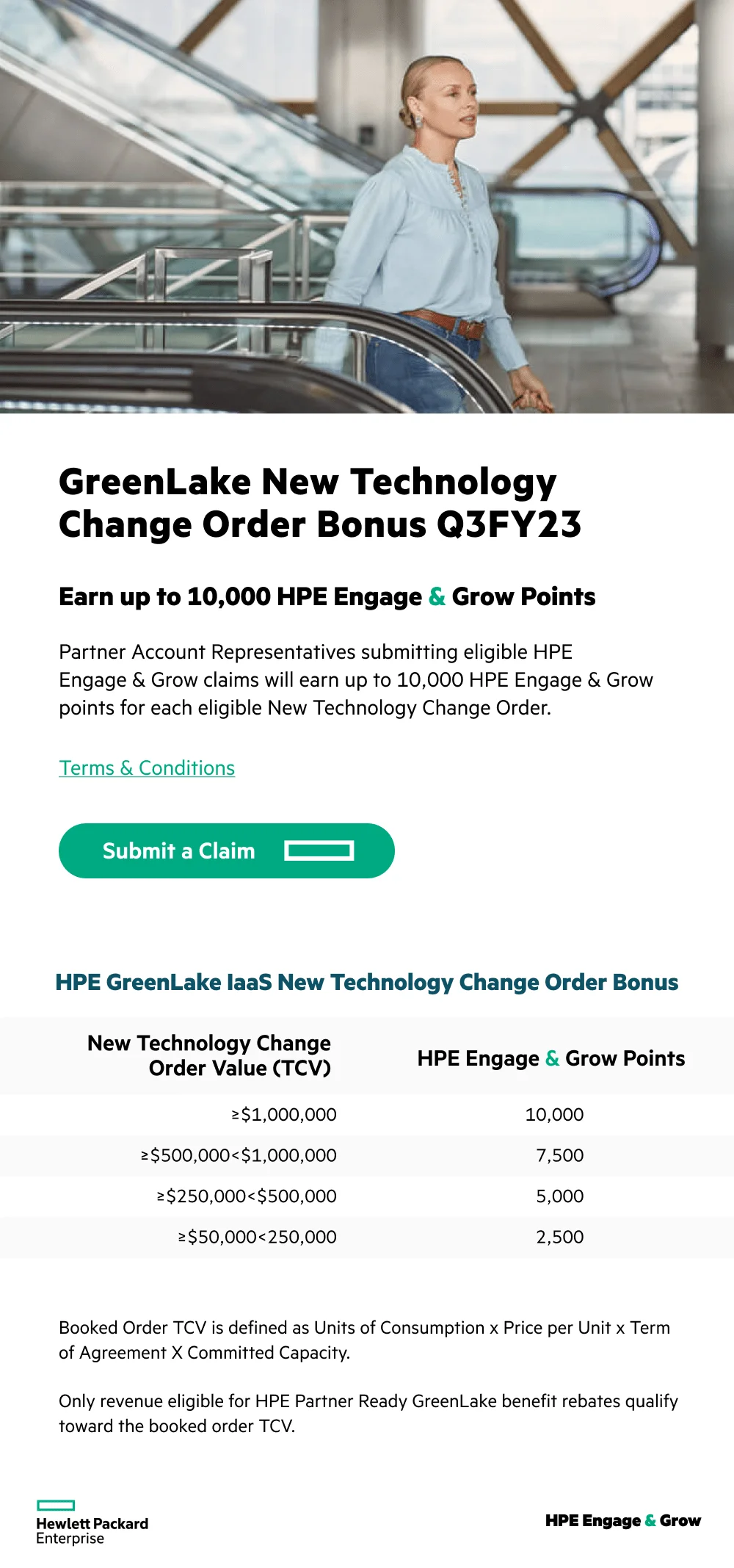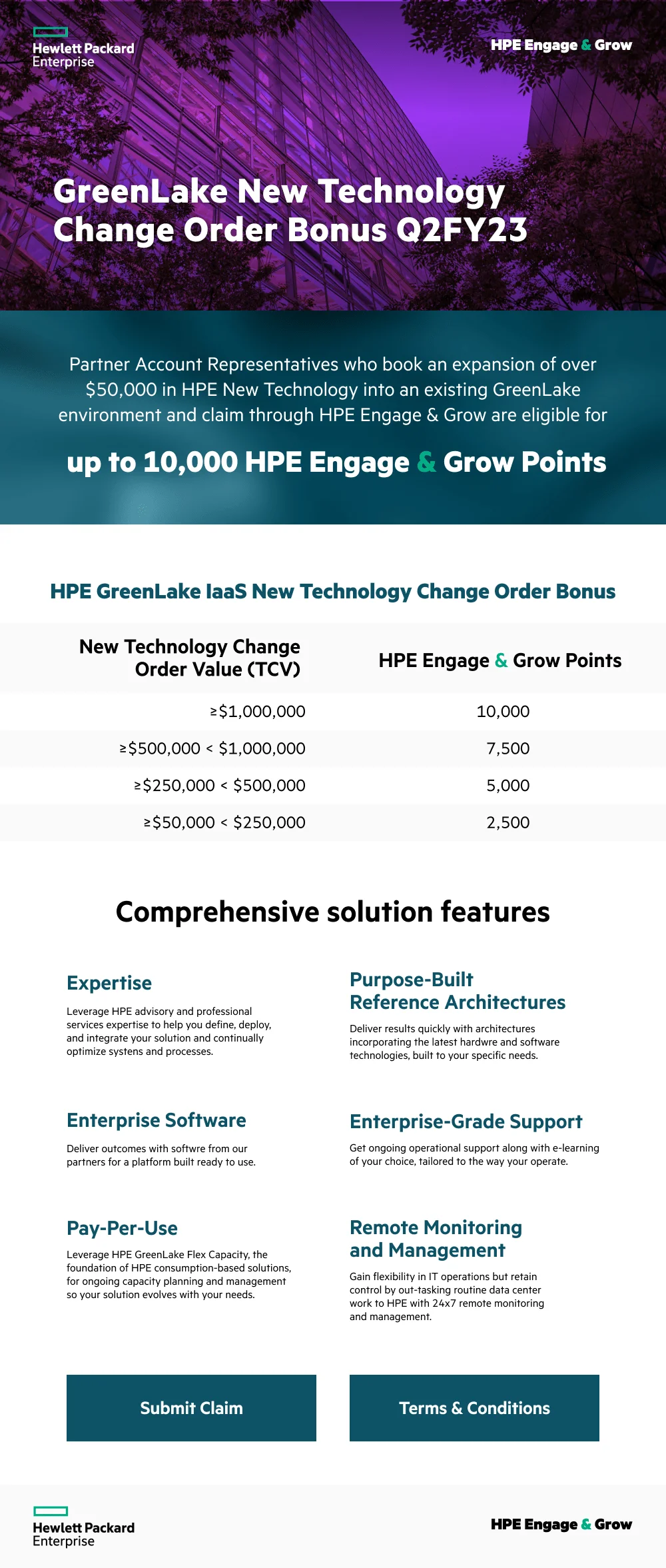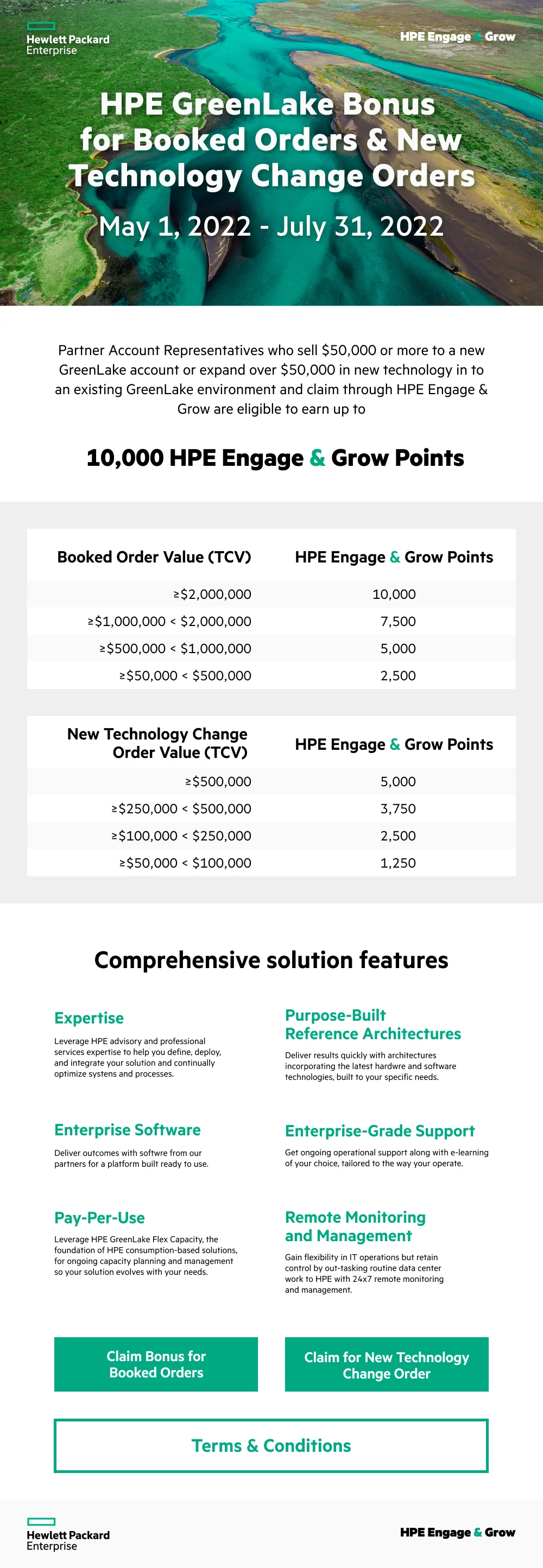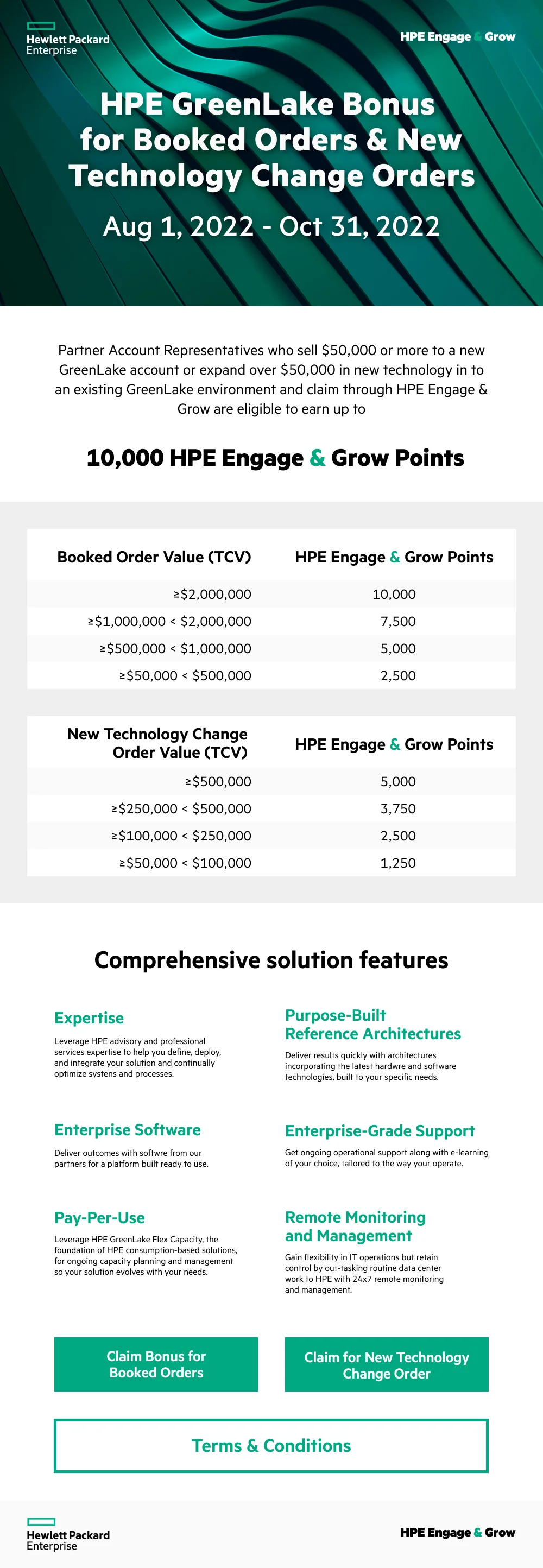 Partner Account Representatives who sell $50,000 or more to a new GreenLake account or expand over $50,000 in new technology in to an existing GreenLake environment and claim through HPE Engage & Grow are eligible to earn up to