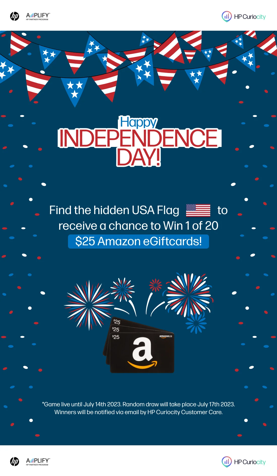 This promotion gives participants the opportunity to discover the hidden American Flag on the HP Curiocity website, offering them a chance to win one of twenty $25 Amazon eGift Cards. It's a brief yet delightful promotional event.