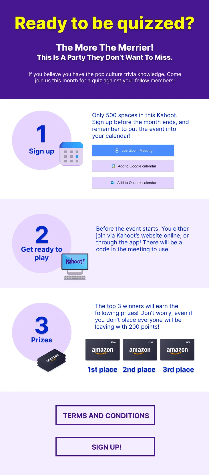 Reps can join a trivia to answers questions, and the top three win prizes.