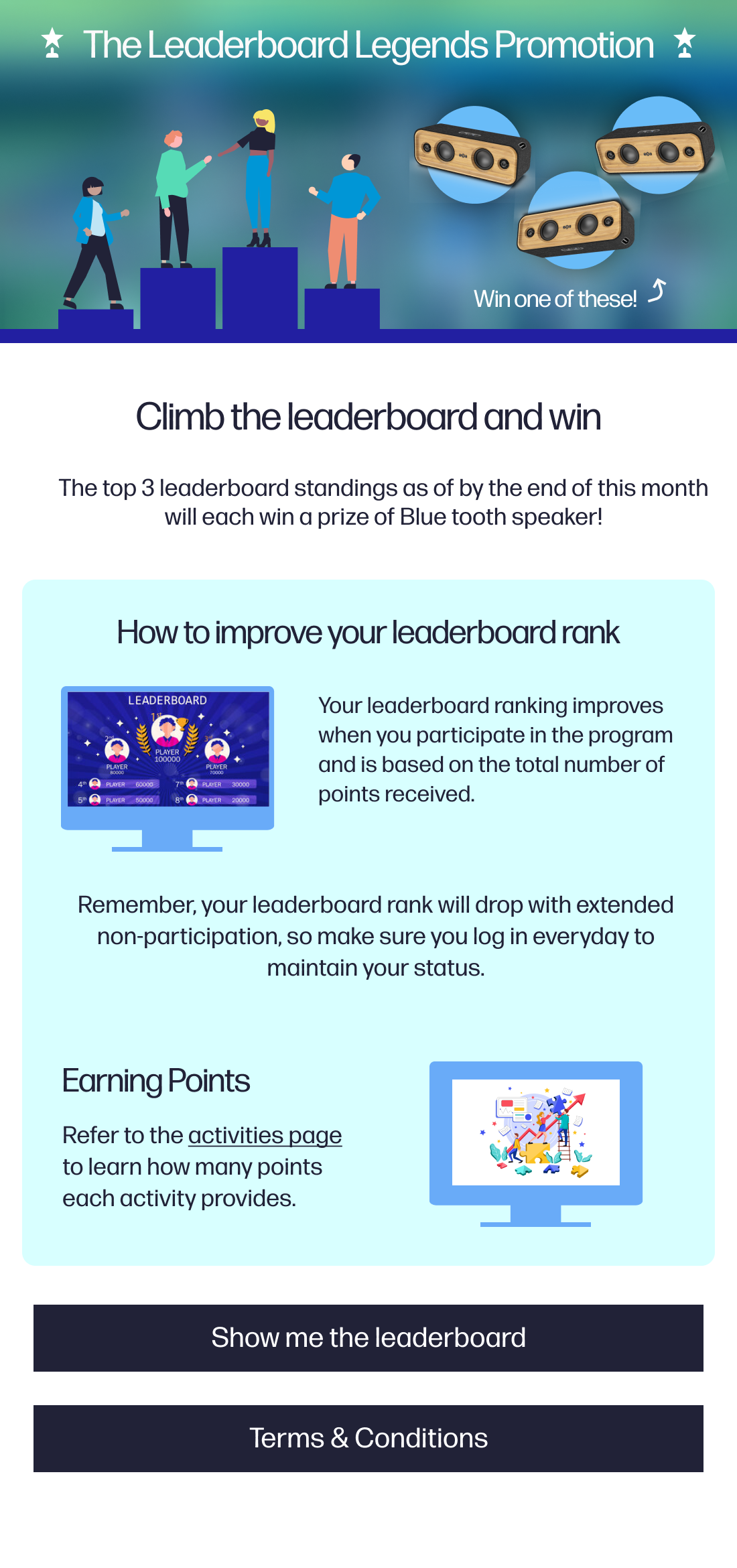 The top 3 reps on the leaderboard standings as of by the end of this month will each win a prize of Blue tooth speaker