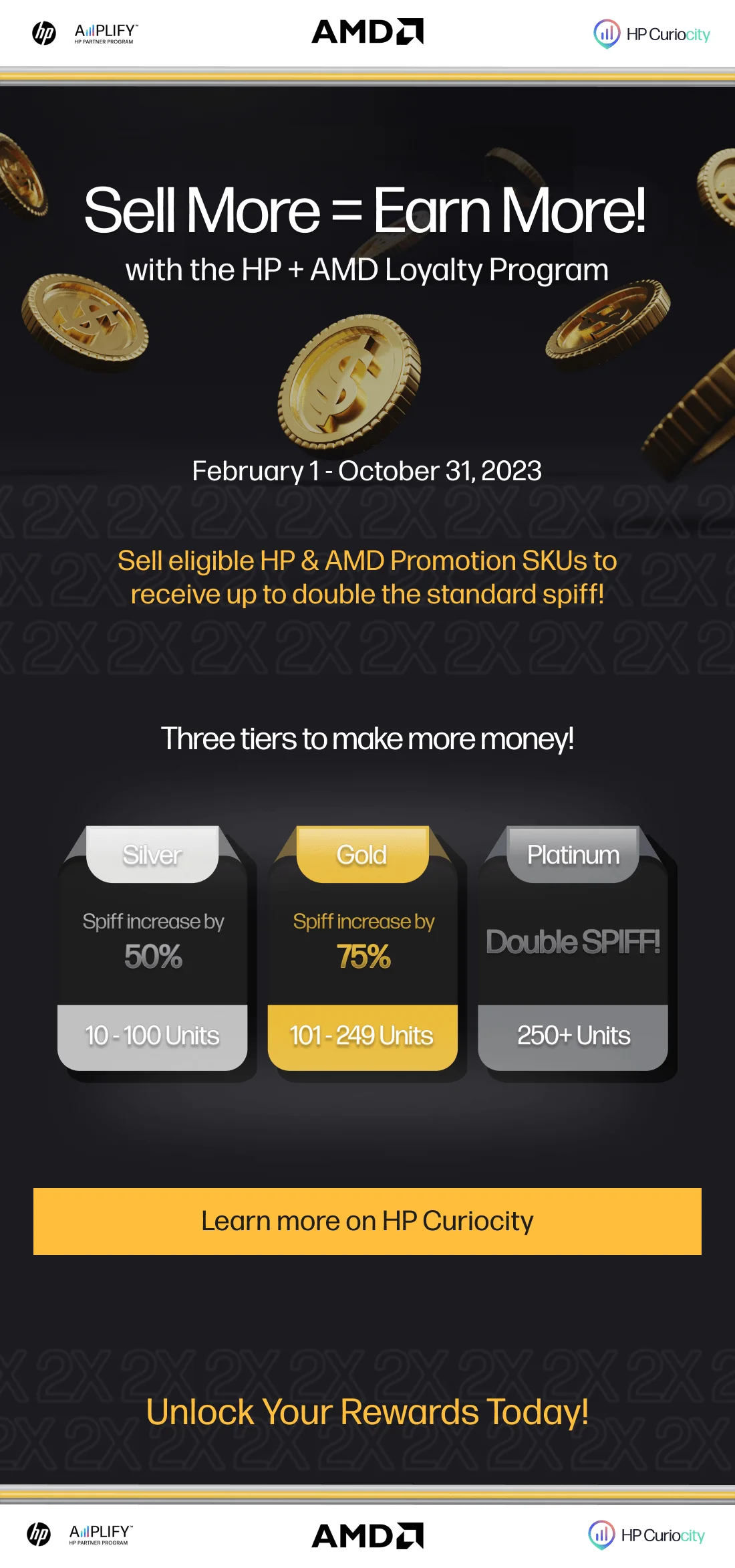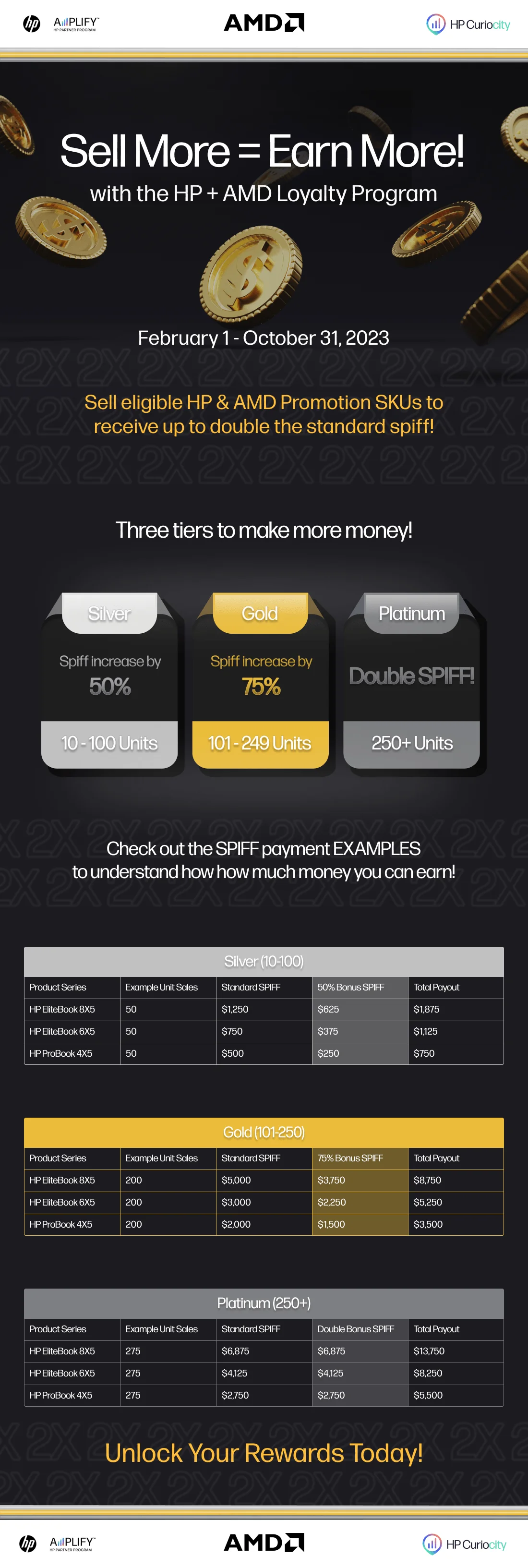 •Promotion Overview: Sell qualifying AMDSKUs to earn up to Double SPIFF. Quarterly structured program.