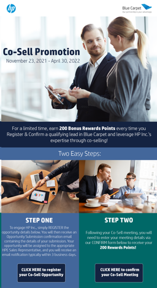 •Promotion Overview: Users registered their qualifying leads in BC Canada and leveraged the assistance of a HP market specialist to help secure the new deal