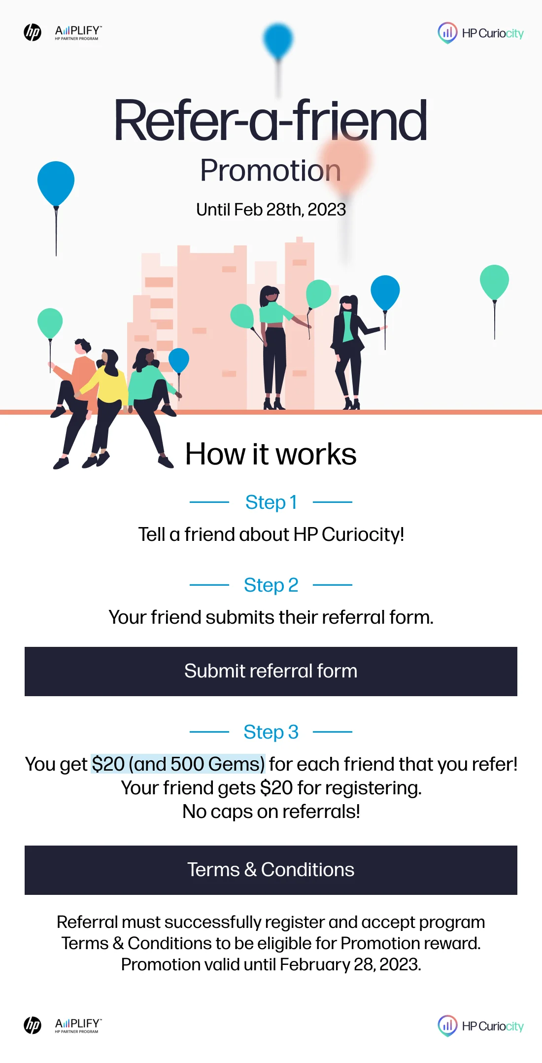 Reps get $20 (and 500 Gems) for each friend that they refer. Their friend gets $20 for registering. No caps on referrals!