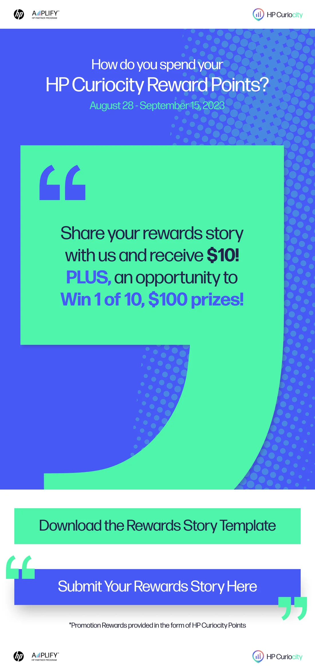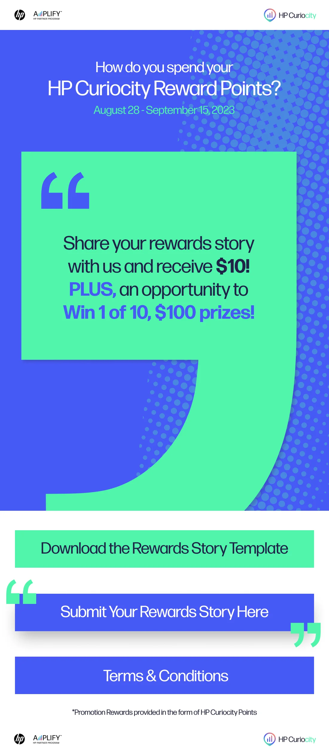 •Promotion Overview: Share how you spend your HP Curiocity rewards and receive 10 HPC points and a ballots towards a random $100 Amazon e-Gift Card draw.