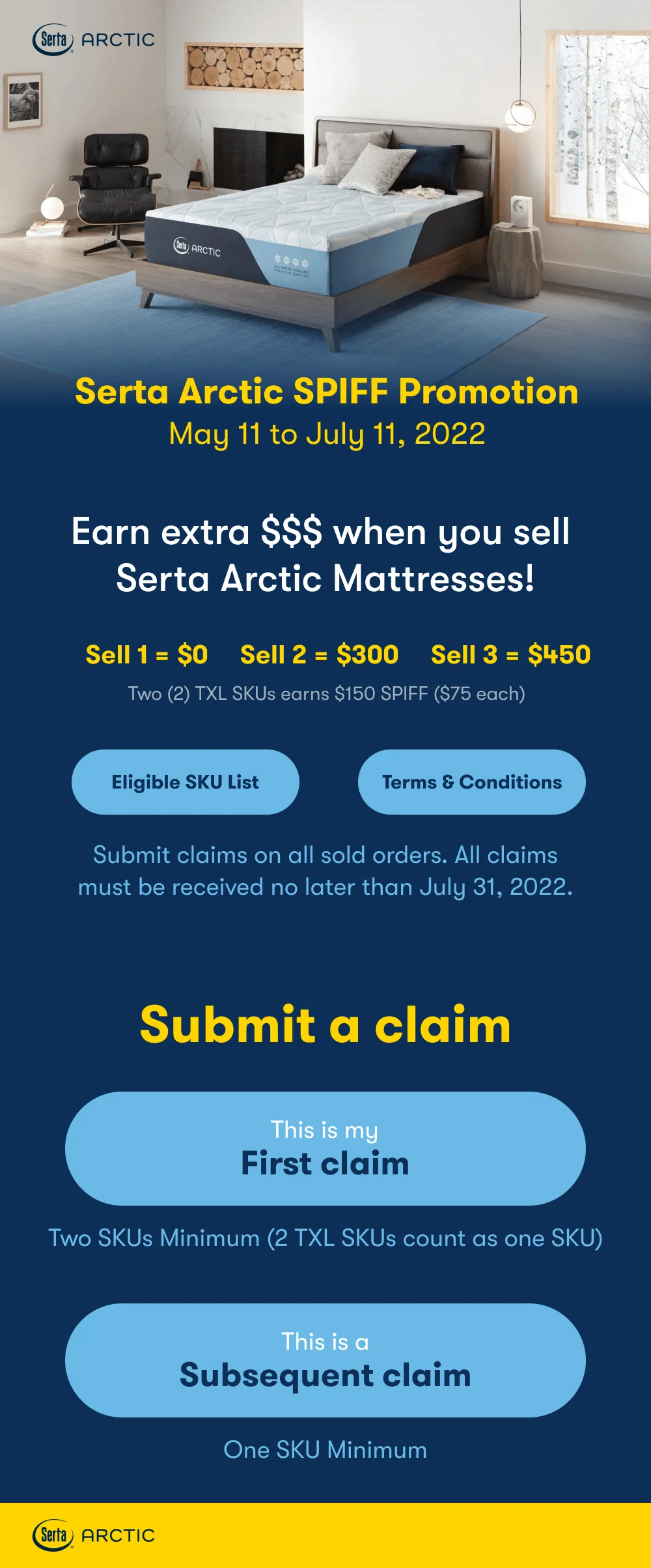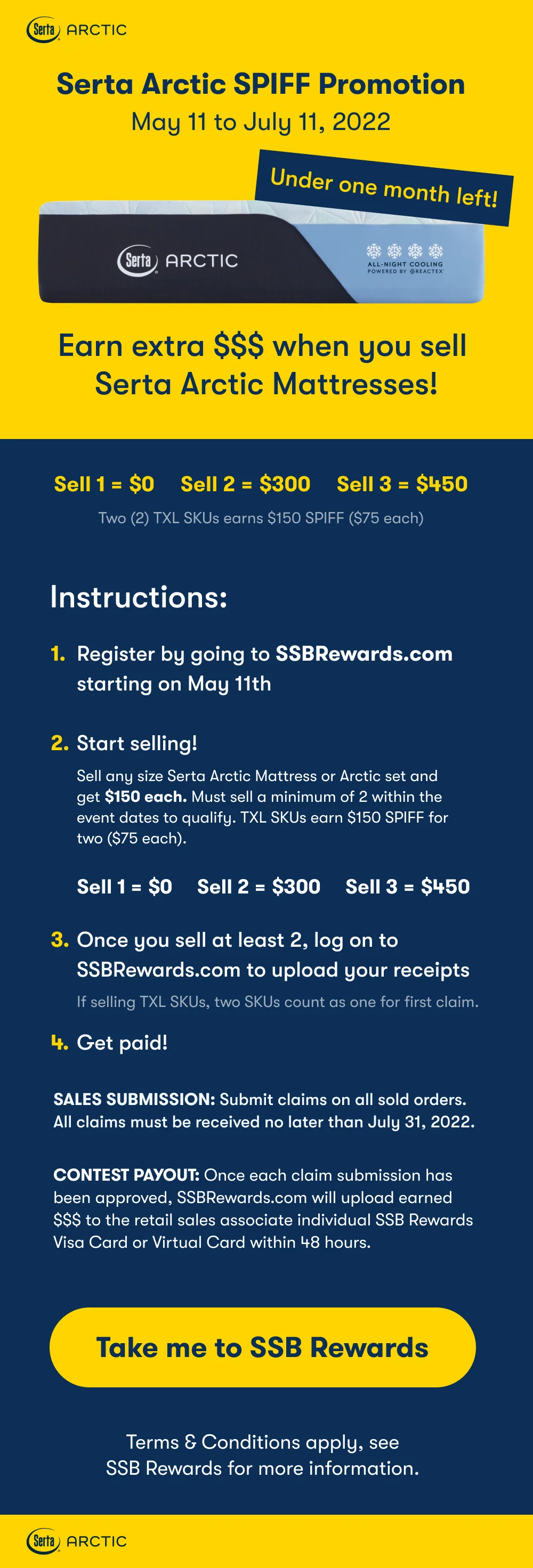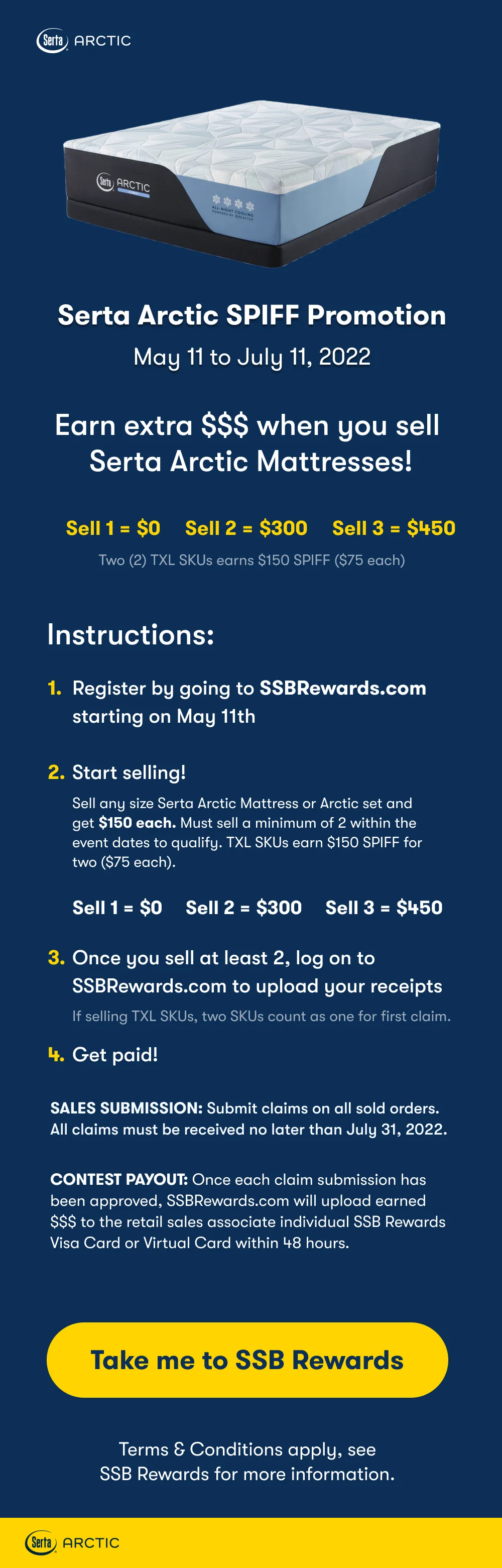 When reps sell three of the Serta Artic Mattress they get a bonus of $450.