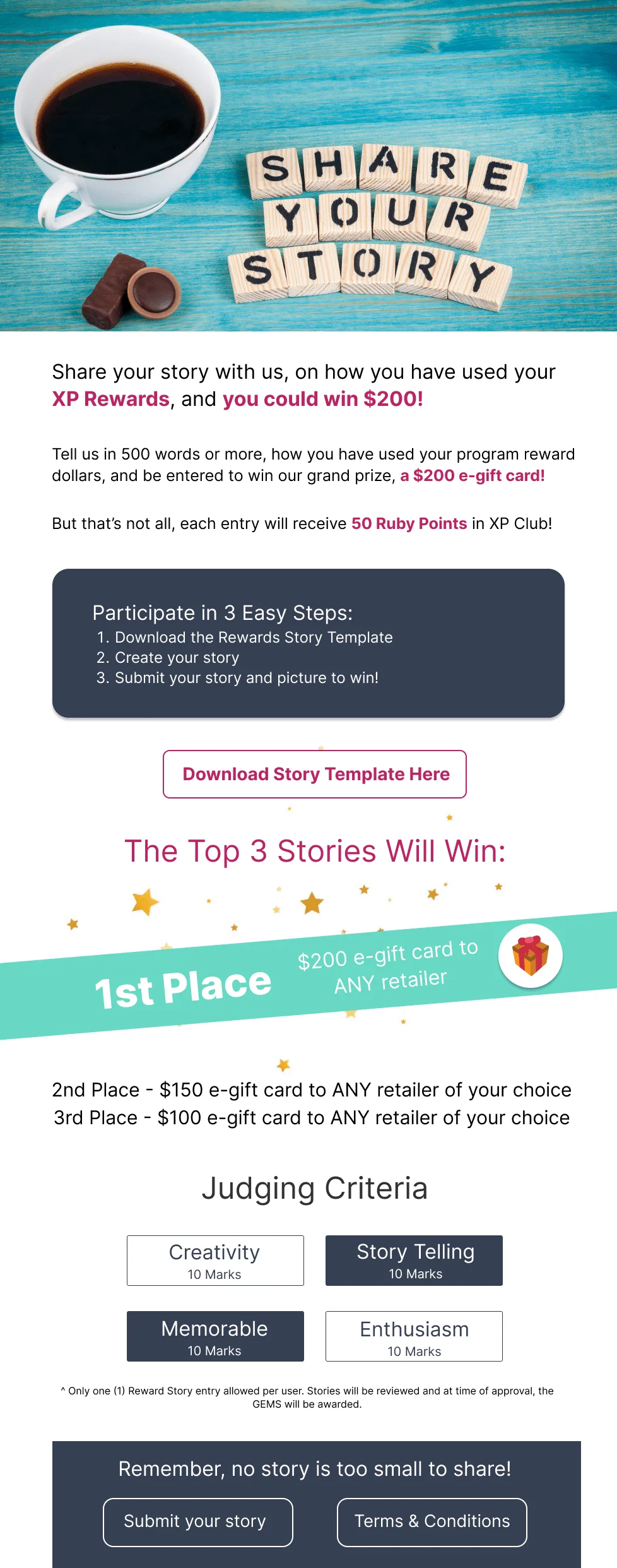 Reps can submit a story on how they use their points and the best one will win $200 and extra points! There are 3 places and subsequent prices given to 2nd and 3rd.
