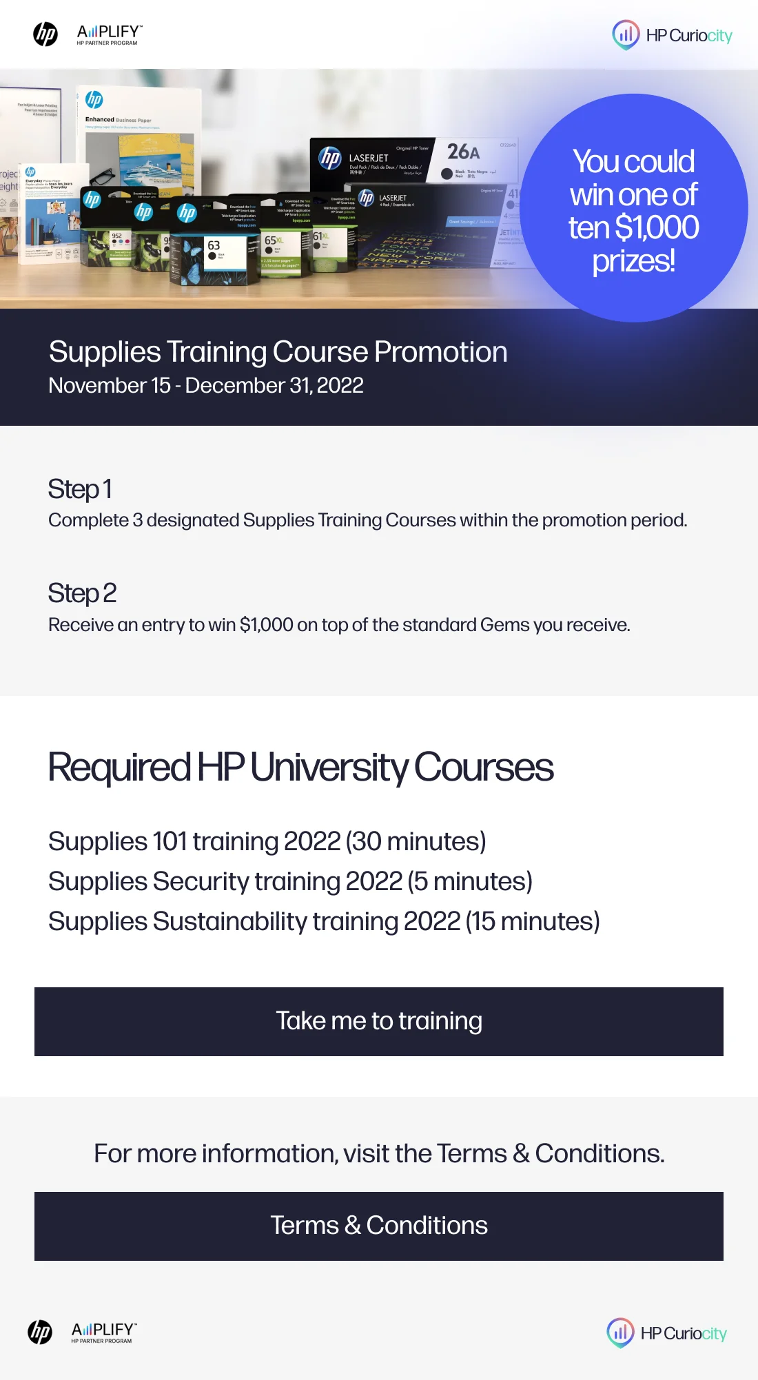 Reps needed to complete 3 designated Supplies Training Courses within the promotion period. Then they would receive an entry to win $1,000 on top of the standard Gems they receive.