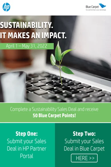 •Reward structure: Receive 50 Blue Carpet points for each registered HP Sustainability Sales Deal