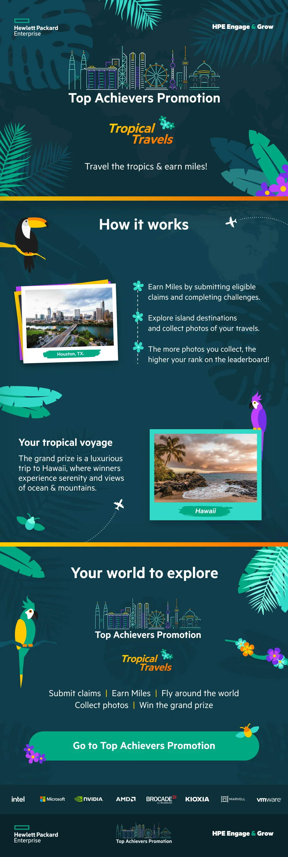 Reps who participate in all HPE Engage and Grow such as by submitting valid claiming SPIF (Eligible SKU list), claiming promotions and taking training, the more opportunities you will have to be an achiever. Complete the challenges and activities presented for additional miles. The top participant on each leaderboard will earn this spot!